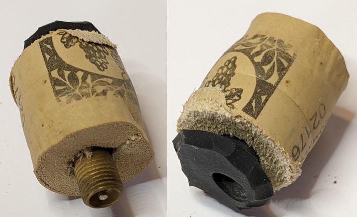 3. Dann haben wir ein Loch in den Korken gebohrt und das Fahrradventil hinein gesteckt.